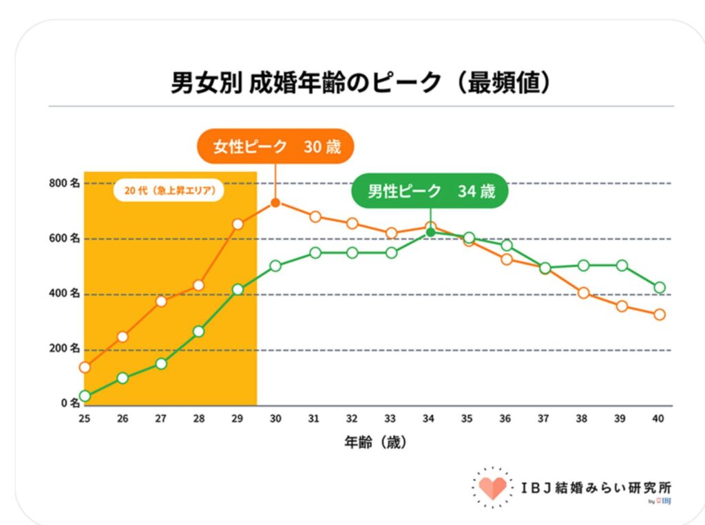 女性が最も多く成婚している年齢のピーク(最頻値)は、ズバリ「30歳」です。 グラフを見ると、20代後半から成婚数は一気に急上昇し、30歳で頂点を迎えます。